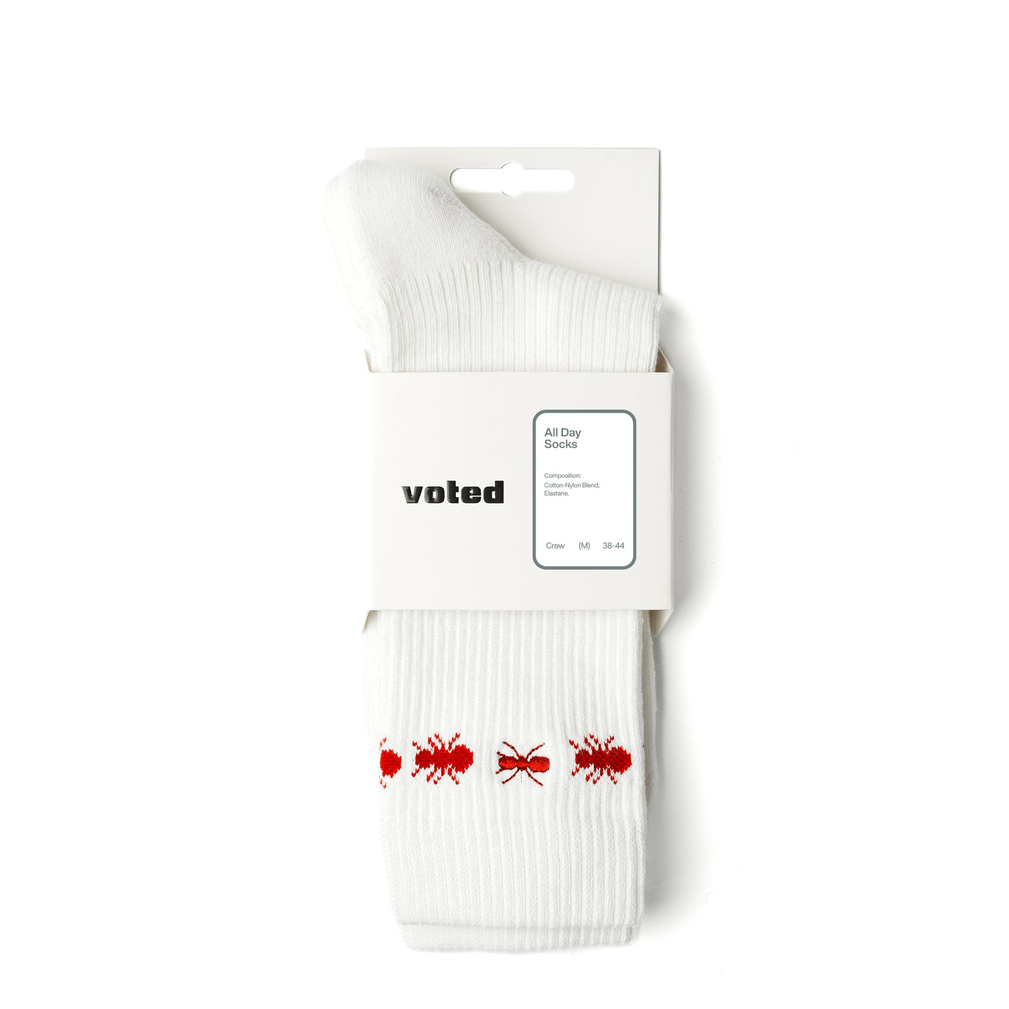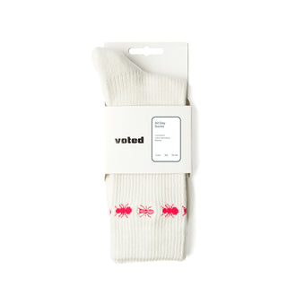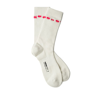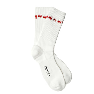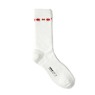 "Signature, seamless cuff-rib with soft terry cushion at the toes and heel area. An ant embroidery followed by a detailed all-around cuff ant ring.