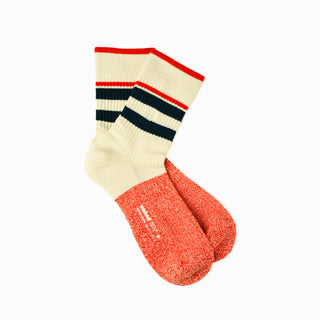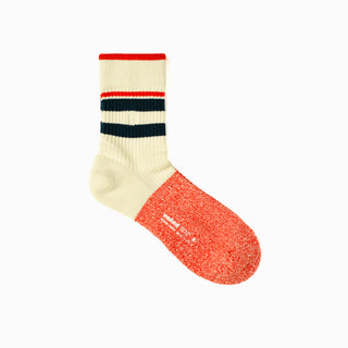 ディスコソウルと日常の快適さが出会う一足。大胆な2トーンストライプと、なめらかなコットンツイスト糸がレトロなリズムを足元に演出します。アーチサポートと、つま先とかかとのテリークッションにより、一日中、夜まで快適な履き心地をキープ。夢見る人、踊る人、グルーヴを大切にする人へ。