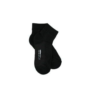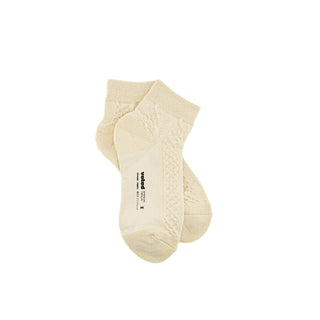 繊細なケーブル編みと通気性の高いメッシュパネルが融合した、やわらかなスタイルとテクニカルな快適性を兼ね備えた一足。つま先とかかとにはベビーテリークッションを施し、さりげないサポート感をプラス。サイドの小さなリボンがフェミニンなアクセントに。
