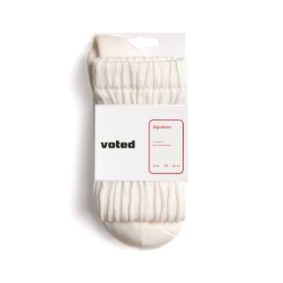 "VOTED's all day Merino Wool socks, sourced from Merino sheep, possessed qualities such as absorbency, water resistance and insulation.